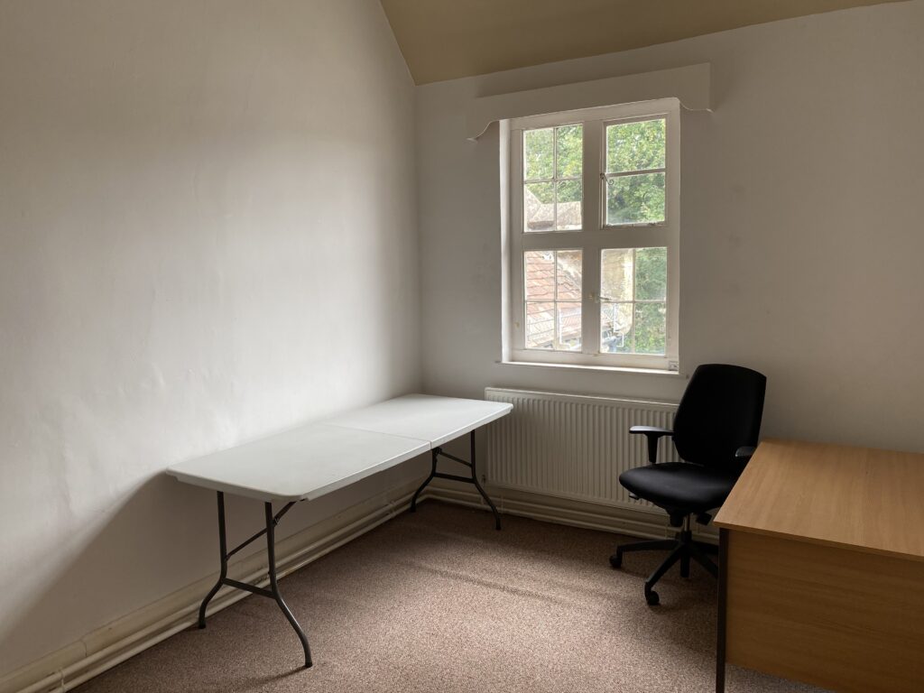 There is currently one office (11.76 sq metres) available to rent on the first floor of the community centre. £150 pcm to include WiFi, heating, basic office furniture. This is an attractive, high-ceilinged room.